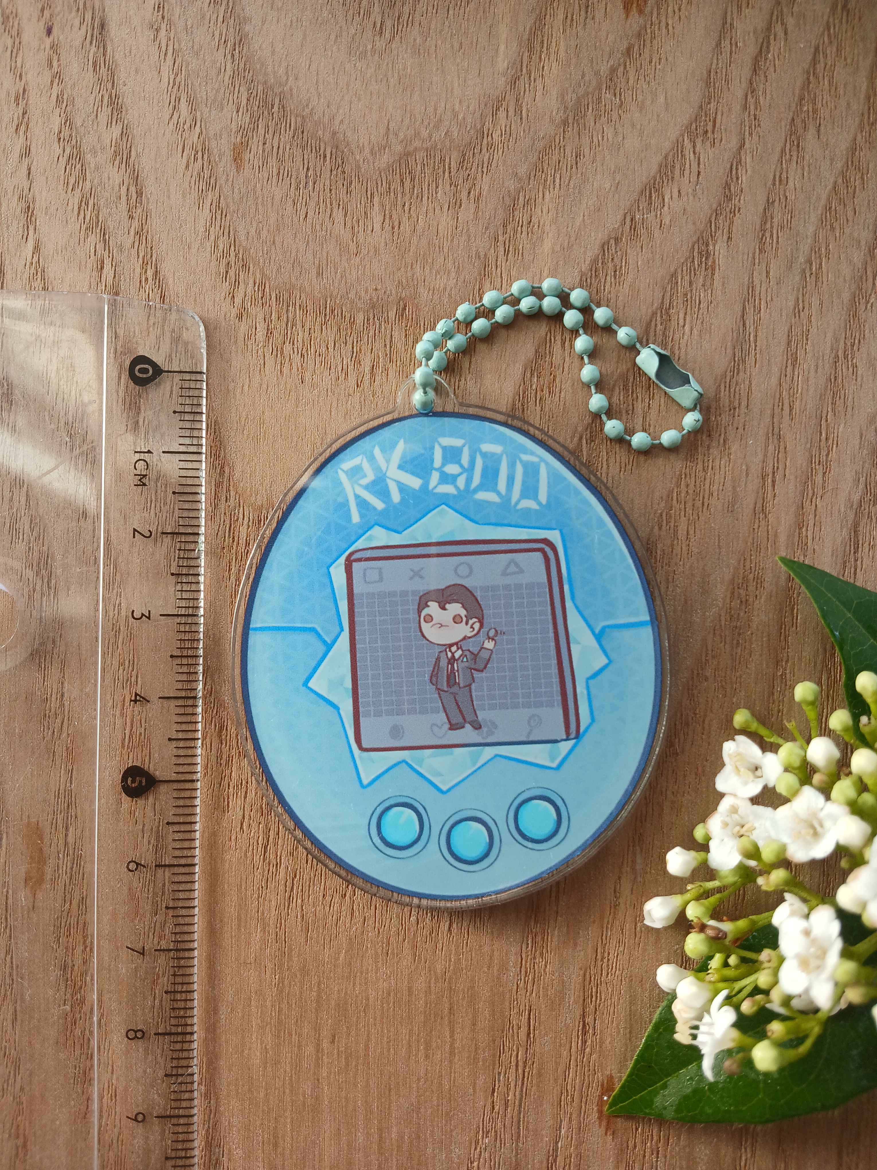Connor (Detroit: Become Human) tamagotchi shaped acrylic keychain. 6,3cm of height.